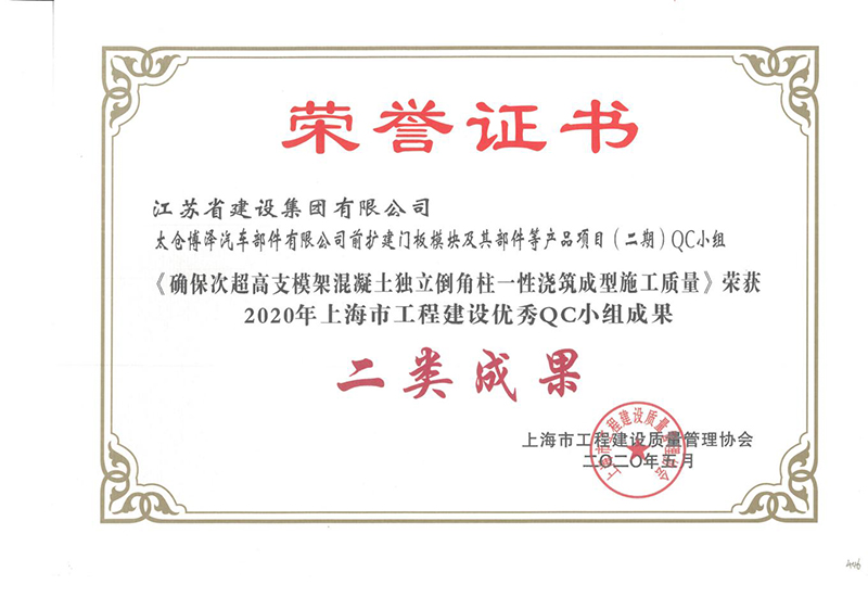 太倉(cāng)博澤二期獲得上海市QC二類成果獎(jiǎng)