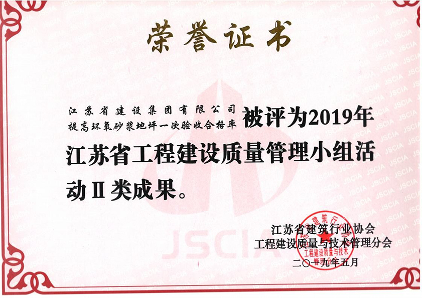 提高環(huán)氧砂漿地坪一次驗(yàn)收合格率獲評(píng)2019江蘇省工程建設(shè)質(zhì)量II類成果獎(jiǎng)